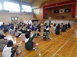 今日は2月の全校集会を行いました。現在、午前中5時間を試行中ということで、朝の時間がなく、昼休みの後の時間を使って行いました。