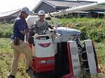まず、JA青年部の方に、稲刈りの方法を習いました。