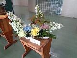 今日も、小原流師範、横山佳代子先生がお花を生けに来てくださいました。毎回、ボランティアで来てくださっています。