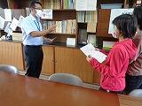 そこで、授業の入る前に、6年生の子どもたちが、教頭先生の所へ来て「What time do you get up?」「What time do go to school?」など質問をしていました。