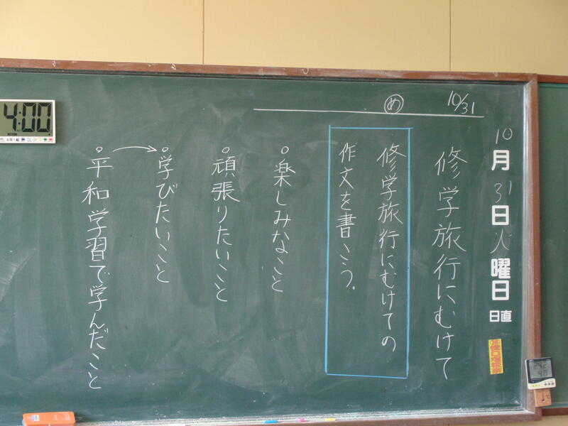 6年生はもうすぐ修学旅行です。楽しみなこと、がんばること、平和学習に関することなど、修学旅行でしかできなことがたくさんあります。