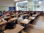 今週金曜日(31日)の「アルケミスト交流コンサート」に向けて、全校児童で歌の練習をしました。本番は、アルケミストのお二人といっしょに「あの空」と「ひなたの真ん中で」の2曲を歌います。体育館に集まり、全校児童で歌うのは初めてでしたが、一生懸命、大きな声で歌っていました。
