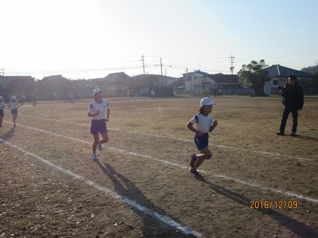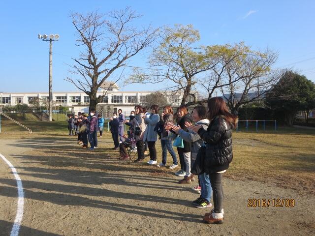 12月の参観日は、持久走記録会でした。1時間目は4~6年生、3時間目が1~3年生で実施しました。この日は晴天に恵まれ、子どもたちは、おうちの人の前で一生懸命ゴールを目指して走りました。