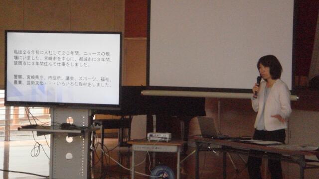 今日は、本校出身で、宮崎日日新聞社総務部長兼人事課長の吉岡智子さんをお招きし、「ようこそ先輩(さいと学)」の授業を行っていただきました。吉岡さんは、お話の中で読書の大切さを説かれ、「読書は先人の脳のかけらを、自分の脳に埋め込むこと。直に体験することが一番重要だけど、何でもかんでも体験できるわけではないから、自分が体験していないことを体験した人の本を読んで、自分の中に取り入れることは大事。」と言われました。これからもっともっと読書をしていろんな「人の脳のかけら」を取り込んで、これからの学習や生活に活かしてほしいものです。