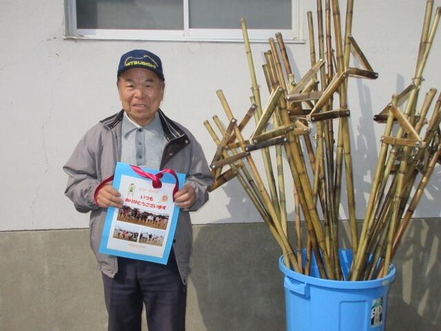 活動の最後に、いつも、手作りの竹馬を提供してくださる杉田さんに感謝の気持ちをお伝えしました。