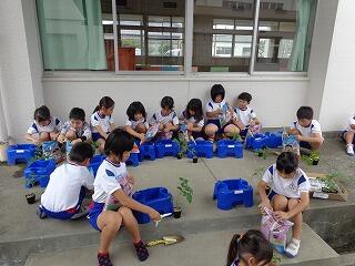 一人一鉢で、植え方の手順を髙須先生が説明をしました。