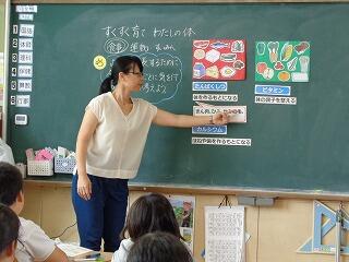 今日は4年生の授業に西都市の栄養教諭:宮原知子先生に来ていただき、保健の授業をしてくださいました。