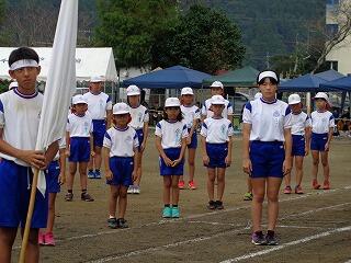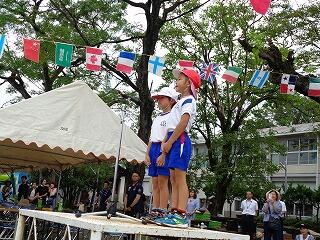 開会式では児童代表で1年生の湯野宮成さんと西田早希さんが元気いっぱいのあいさつをしました。