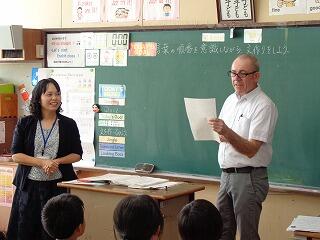 今日は、熊本県芦北町教育委員会より2名の先生が、外国語活動の授業の様子を視察に来られました。