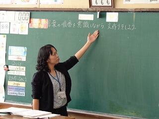 本校では、外国語推進教諭を中心に、ALTの先生と担任と一緒に授業を進めていきます。