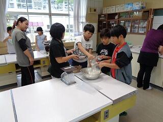 本校では、毎年5年生が実習田で育てたもち米を、PTAバザーで販売しています。今日は、5年生保護者の方々に来て頂いて、1kgずつ袋詰めの作業を行いました。