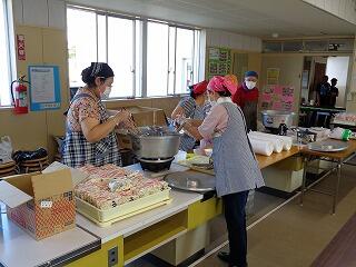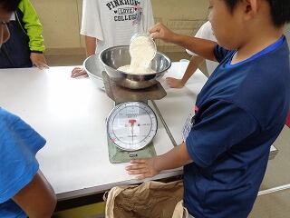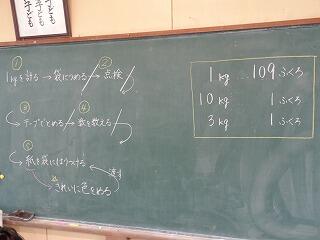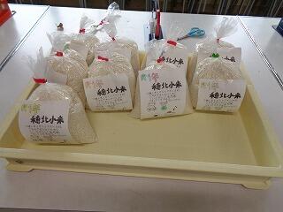 本校では、毎年5年生が実習田で育てたもち米を、PTAバザーで販売しています。今日は、5年生保護者の方々に来て頂いて、1kgずつ袋詰めの作業を行いました。