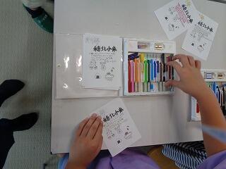 3枚のカードを使って、文章の構成や短い英文を学習しました。