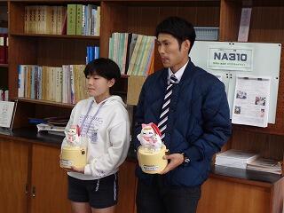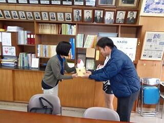 また、給食の献立を考えてくださる宮原先生に、給食感謝集会でお礼の手紙を渡しました。