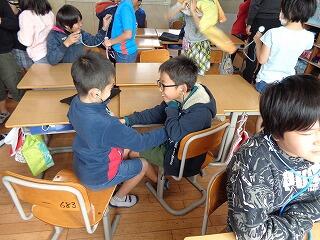 「いのち」を実感するために聴診器を使って心音を確認しました。