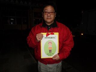 西都市消防署の方から「素早く逃げること」「煙を吸わないためにハンカチで口を押えて逃げること」など、火災の場合の「命の守り方」のお話がありました。