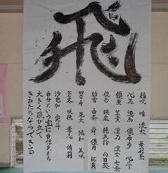 入場口前方に、担任からのメッセージの書が掲示されました。