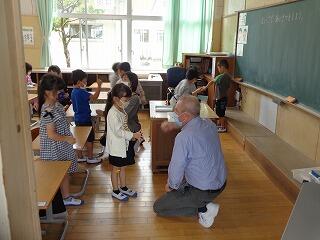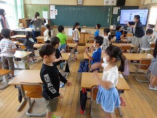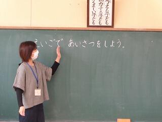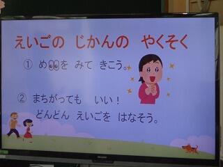 1年生にとっては、初めての「外国語活動」がありました。担任の先生やALTの先生と一緒に元気よくあいさつから始めました。