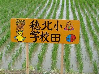 稲作実行委員会の方が看板を作ってくださいました。デザインは5年生全員で考えました。穂北小学校の実習田をしっかりと見守ってくれると思います。