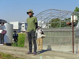また、稲の刈り方の説明をJA青年部の壹岐誠一さんがしてくださいました。
