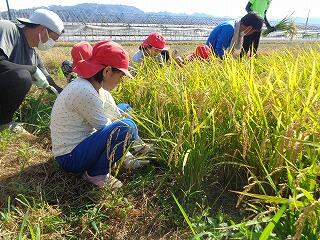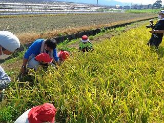 初めて稲を刈る子供たちもいて、みんな楽しそうに取り組んでいました。