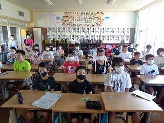 校長先生からは、「勉強にしっかり取り組む。読書に親しむ。そして、熱中症にもならないよう体力をつけてほしい。」という内容で「今できることを頑張ってほしい!」とお話をされました。