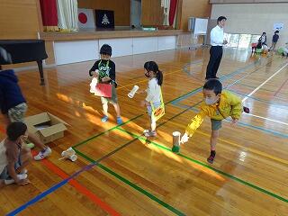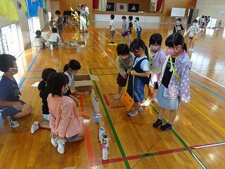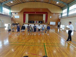 今日は、2年生が生活科の単元で「おもちゃ祭り」をしました。お客さんは1年生です。開会式では、2年生が先輩らしく元気にあいさつしました。