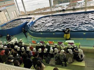 最初の見学場所です。イルカランド(串間市)ではイルカの曲芸にみんな喜んでいました。