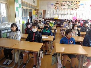5時間目は下学年の部です。校長先生のお話に1年生から3年生まで真剣に耳を傾けてていました。