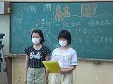 例年ですと、体育館に全校児童を集めて行うところですが、新型コロナウイルス感染対策として児童会室と各学級をオンラインでつなぎ、各学級のテレビを通して結団式の様子を伝えました。
