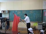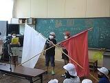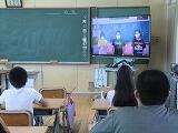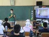 例年ですと、体育館に全校児童を集めて行うところですが、新型コロナウイルス感染対策として児童会室と各学級をオンラインでつなぎ、各学級のテレビを通して結団式の様子を伝えました。