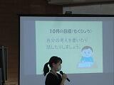 次に、学習部の先生からは月目標「自分の考えを書いたり話したりしましょう」に関して、書き方や話し方のレベルアップの方法について話がありました。