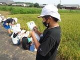 子どもたちは、隣の田んぼの稲と比べたり、稲の様子をタブレット写真に収めたりして観察を行っていきました。