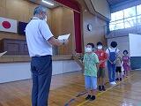 最初に校長先生よりお話がありました。長い夏休みは、普段できないことにチャレンジしてほしい!昆虫や植物の観察、体力づくり、読書…いろいろあります。そして、「自分の命は自分で守る」また「たくさんの命を大切にしてほしい」ということを話されました。