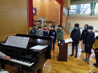卒業式で歌う歌と17日の昼休みの時間に「全校児童に贈るための合奏」の学習です。