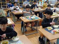 1年生は、3学期から給食当番をするようになり、2ヶ月が過ぎました。もうベテランの域に達しています!