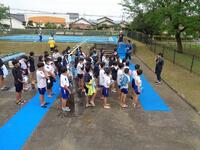 先週の木曜日が雨のため、今日に延期になっていましたが、子ども達は朝からワクワクしていたようです。本校には中・高学年用の大プールと低学年用の小プールがあります。