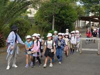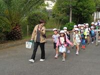 今日は春の遠足です。みんな元気よく「おはようございます!」と返してくれます。