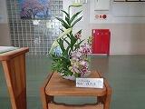 いつも穂北小学校の玄関をきれいなお花で彩ってくださる「小原流師範」横山佳代子先生が、今日も玄関で花を生けてくださいました。