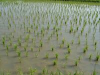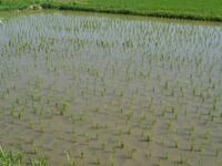 5年生が田植えをして1ヶ月がたちました。田んぼは、緑の絨毯になりつつあります!