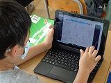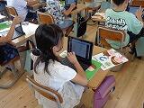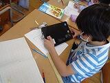 3年生の教室に行くと、タブレットで何かを書いていました。