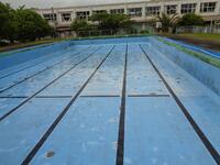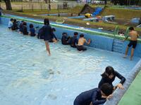 先週の木曜日が雨のため、今日に延期になっていましたが、子ども達は朝からワクワクしていたようです。本校には中・高学年用の大プールと低学年用の小プールがあります。
