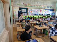 教室では、写真を大型テレビに映したり、子ども達のタブレットに配信して詳しく見たりしながら、気づいた点を発表しました。