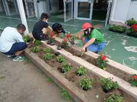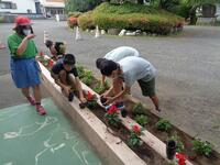 朝のボランティア活動で、6年生の栽培委員会の子ども達が、花壇に花の苗を植えてくれました。