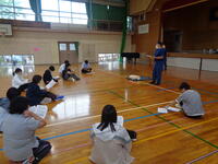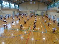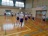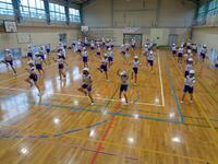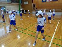 今日の6時間目、5・6年生は本来なら「水泳運動」の予定でしたが、土砂降りのため体育館での活動となりました。