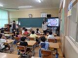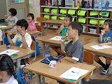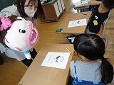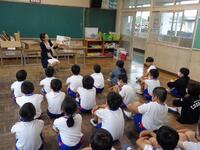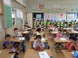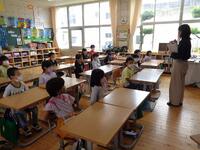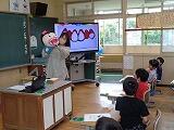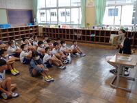 「おはようございます」「こんにちは」「こんばんは」「ありがとう」など分かりやすく教えてくださり、1年生も先生のまねをして覚えていきました。