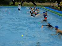 潜ったり、プール中央まで歩いたり、ボール拾いをしたりしながら、水に慣れていきました。
