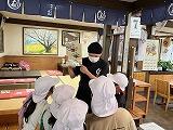ここでは、なんとうなぎを焼く体験をさせていただき、焼いたうなぎをご馳走になりました。もう、みんな大喜びです。ただ、焼き場は、とっても、とっても暑くてびっくりしていました。「あの暑い場所でずっと焼いてるんだ」とびっくりしていました。もちろん、うなぎも「おいしい!」と大喜びでした。