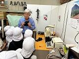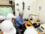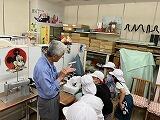 中学生や高校生になったときの制服のお話を聞きました。また、裾上げをするミシンや、刺繍をいれる機械も見せてくださいました。刺繍は実際に機械を動かしてくださり、ここでもまた、子どもたちは大喜びでした。