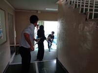 職員室へ連絡がはいり、男性職員が駆けつけます。